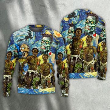 Halloween Zombie Crazy Starry Night Funny Boo Art Style Ugly Christmas Sweater | Adult | US2557