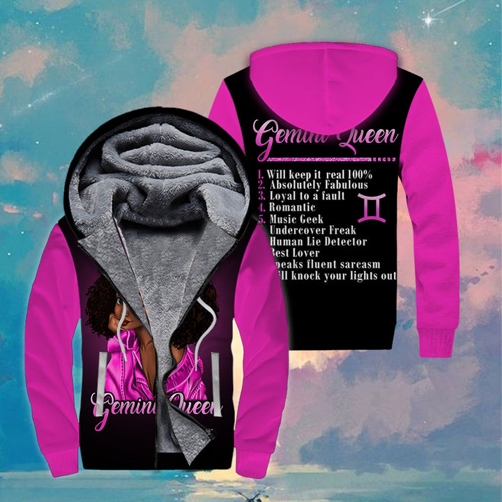 Gemini Zodiac Pink Girl Fleece Zip Hoodie All Over Print | FZ546