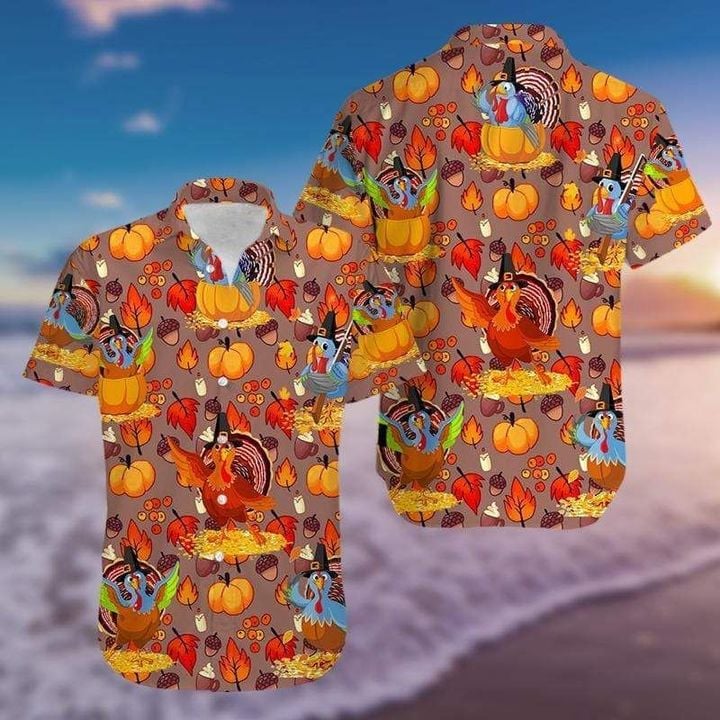 Happy Thanksgiving Funny Cartoon Turkey Hawaiian Shirt | HW3388