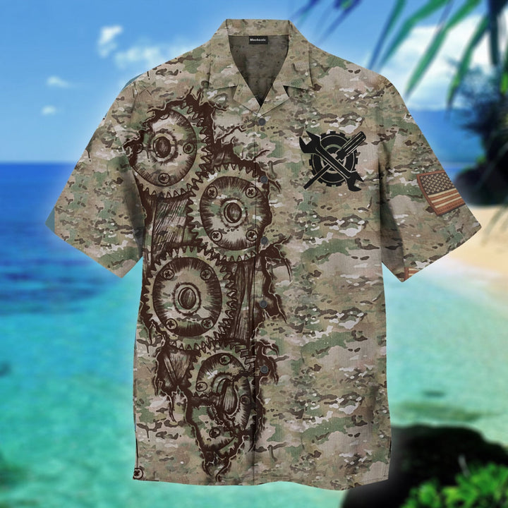 Mechanic Us Army Veteran Camo Hawaiian Shirt | HW3152