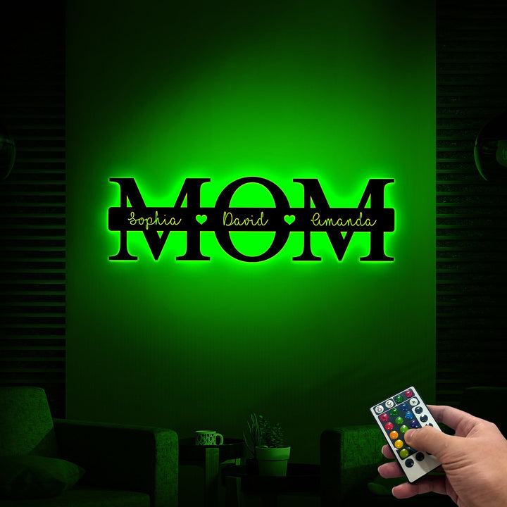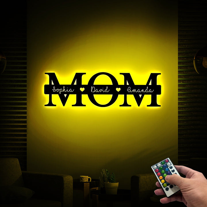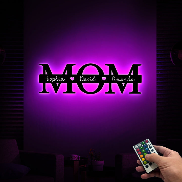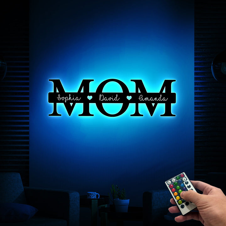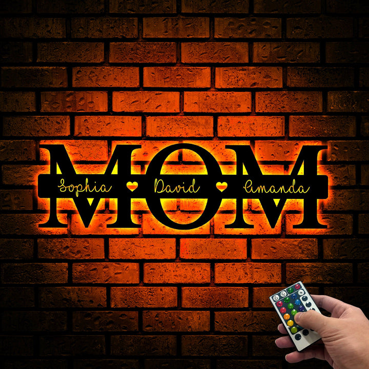 Personalized Mother's Day Gift, Mom Metal Sign with Led Light, Gift for Mom, Custom Kids Name Sign Metal Wall Art, Mom Sign Family Sign Gift